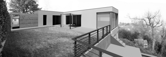Maison contemporaine BBC labélisée avec système constructif mixte ossature bois et béton armé
